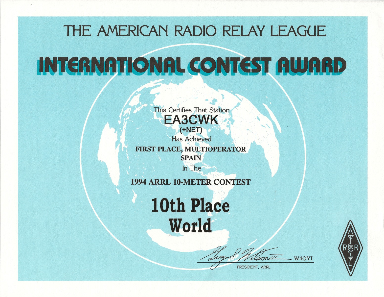 ARRL 10 METERS – Campeón España – 10º Clasificado Mundial