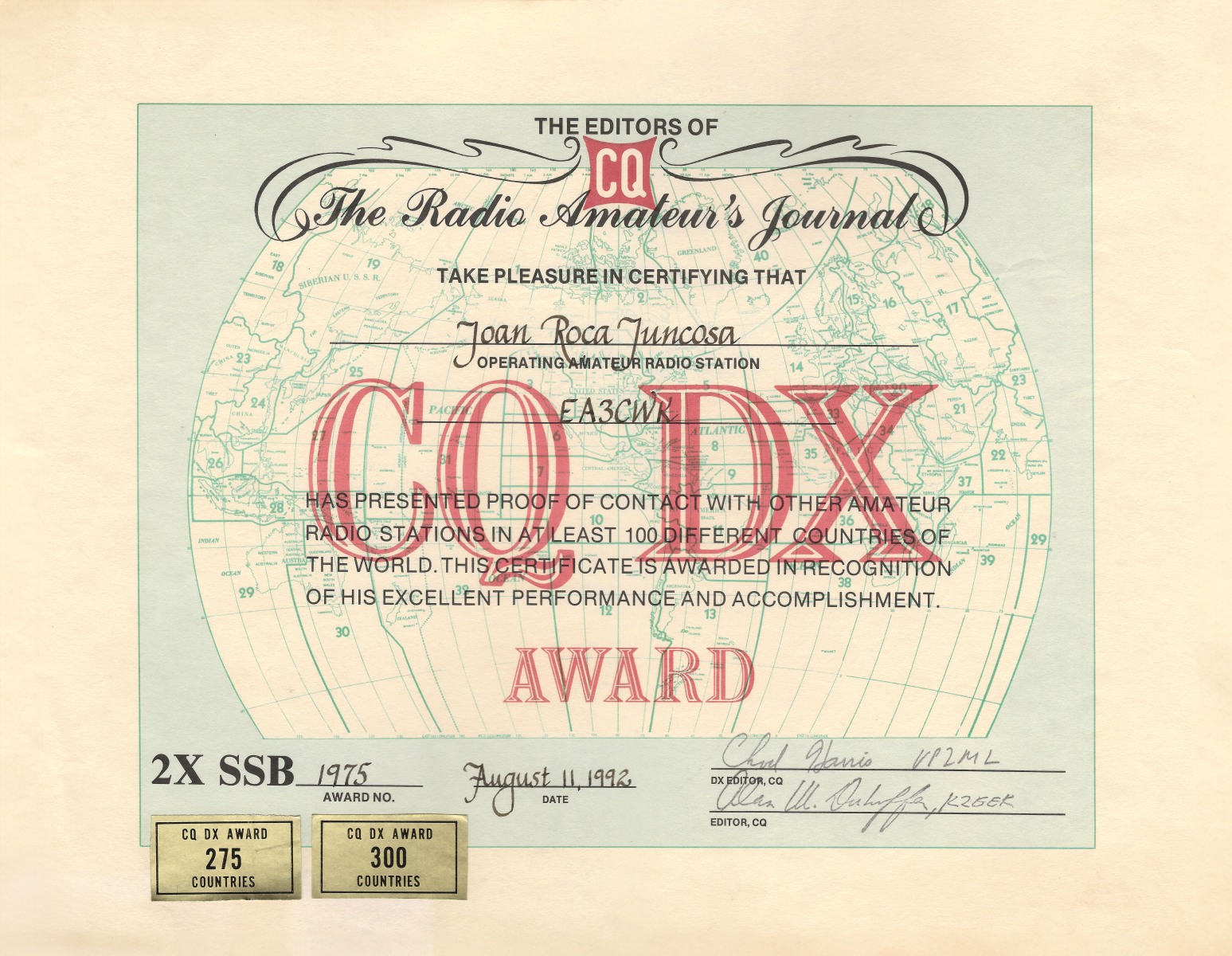 CQDX (número de diploma 1975) – Honor Roll