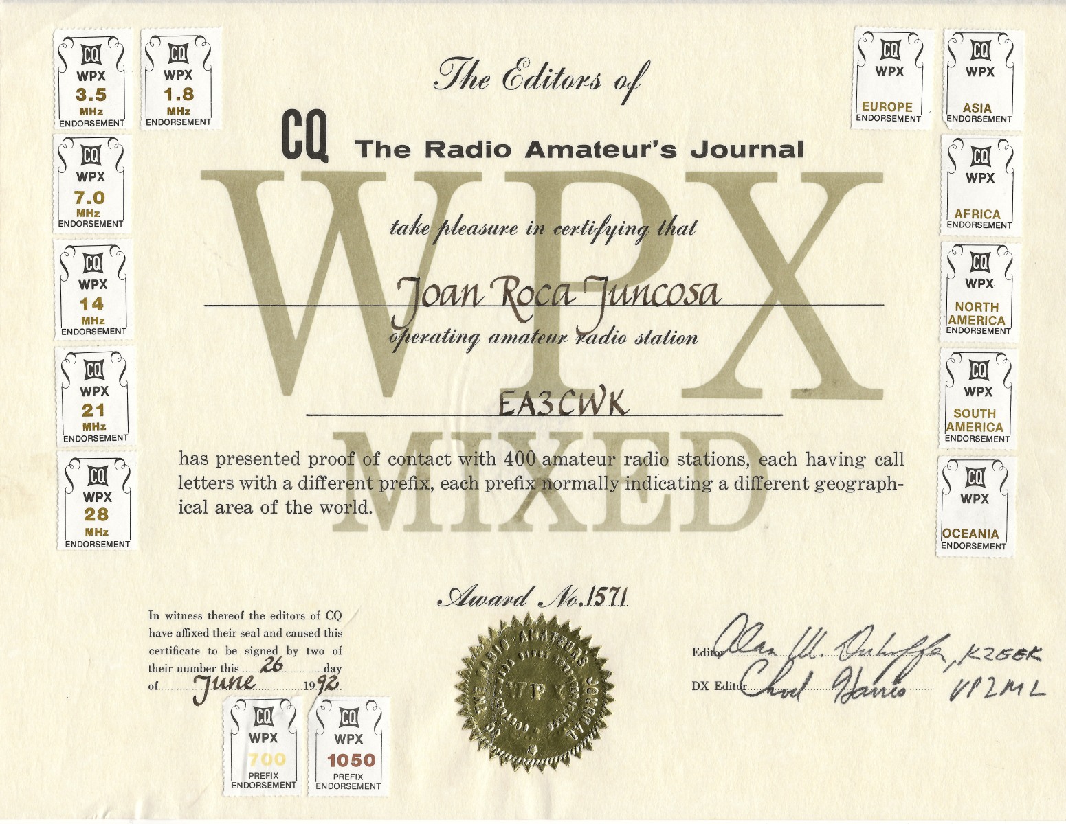 WPX Mixed (número de diploma 1.571)