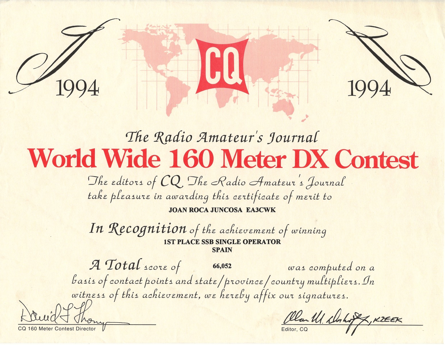 CQWW 160 meters – SSB – Campeón EA