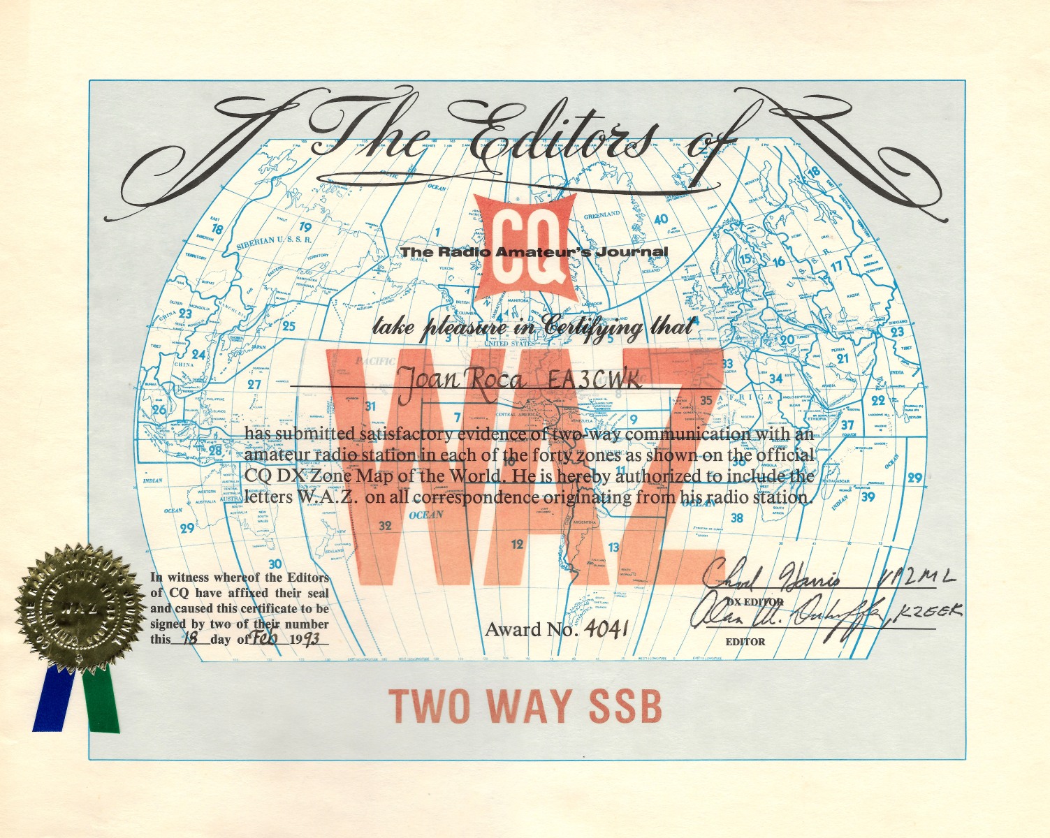 WAZ SSB (número de diploma 4.041)