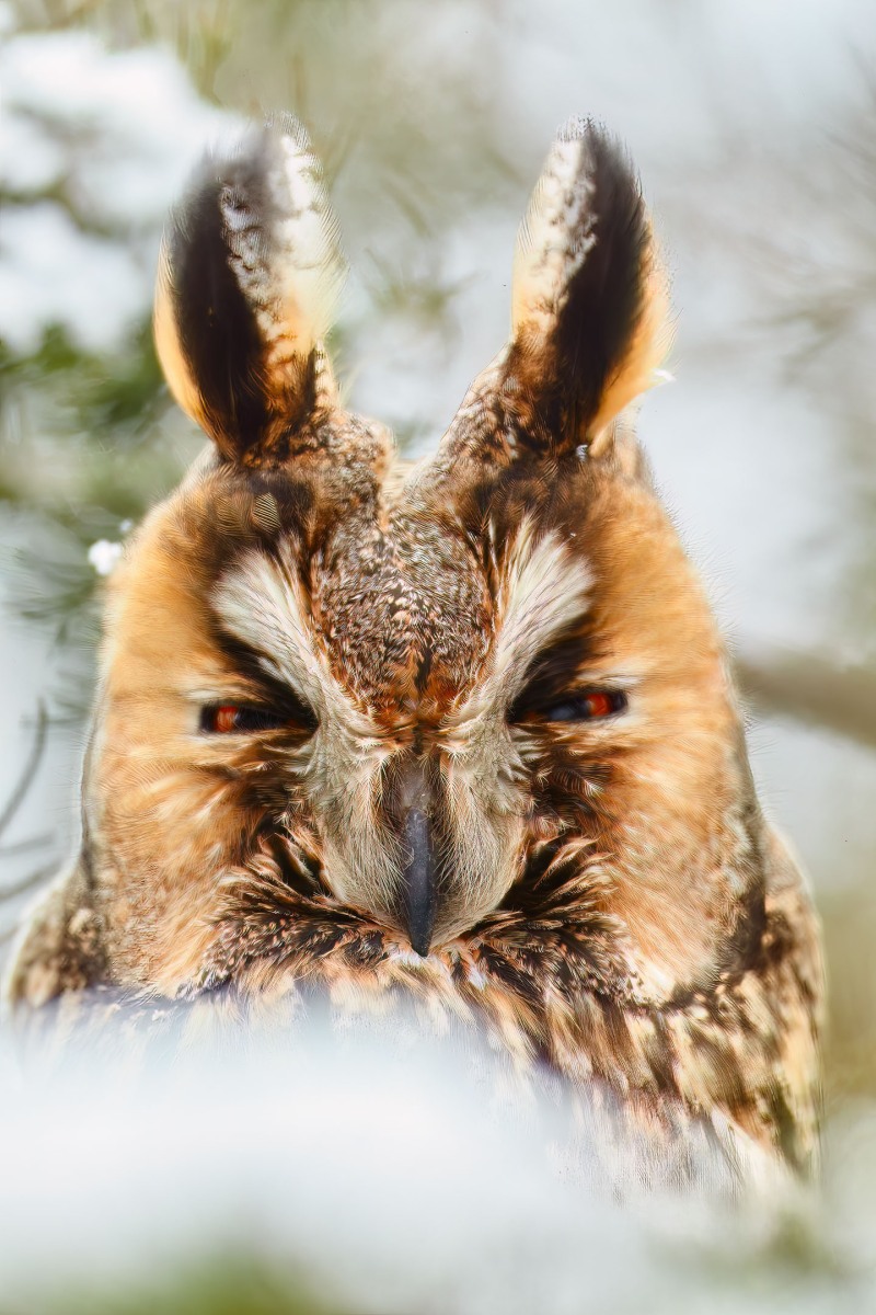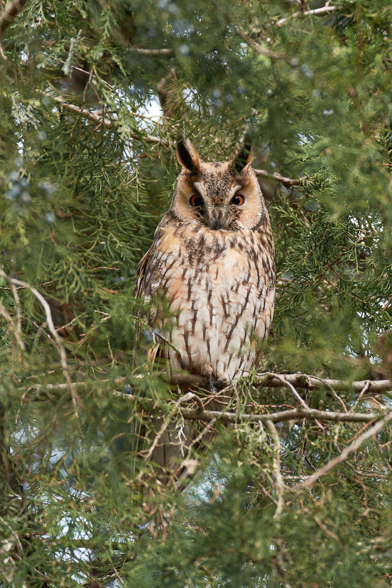- Búho chico (Asio otus) a una distancia tal que casi los podemos tocar con la mano.